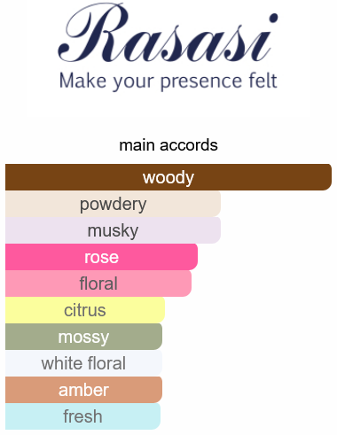 Odah Al Abiad by Rasasi is a Oriental fragrance for women and men. Top notes are Rose, Bergamot and Spicy Notes; middle notes are Woody Notes, Sandalwood, Lily-of-the-Valley, Lilac and Cedar; base notes are Musk, Woody Notes, Oakmoss and Amber.